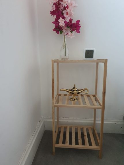 Wooden two-tier storage rack for versatile home organization. Size: 35 x 30 x 70